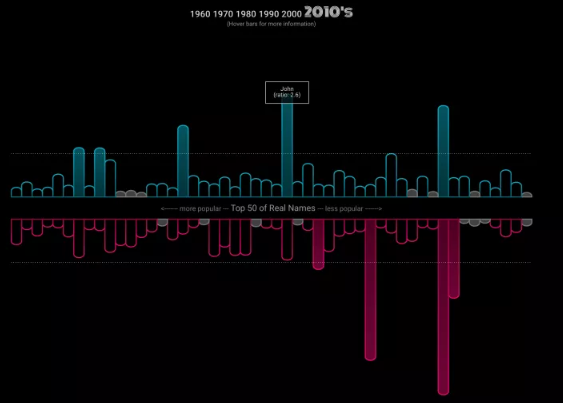 Flowing Data creates a chart that compare the names in moves vs. real life.